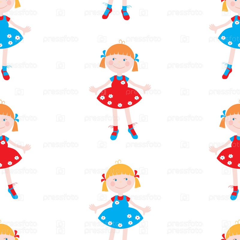 Бесшовный фон с маленькими смешными мультяшными девочками