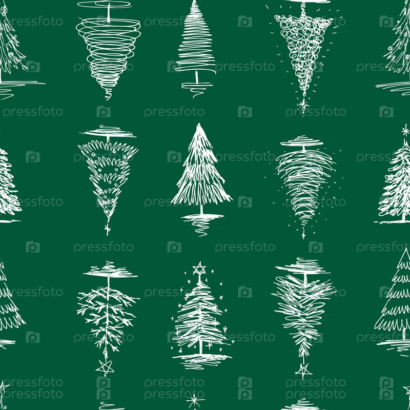 Бесшовный рисунок эскизов различных рождественских елок