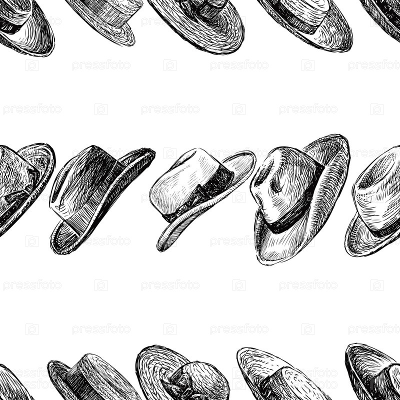 Бесшовный рисунок эскизов различных классических мужских и женских шляп
