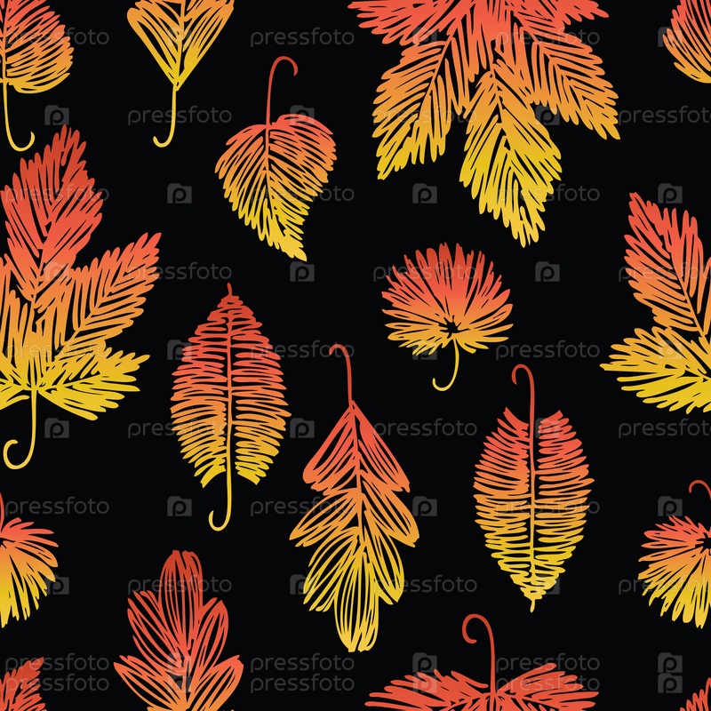 Бесшовный узор из различных нарисованных осенних листьев