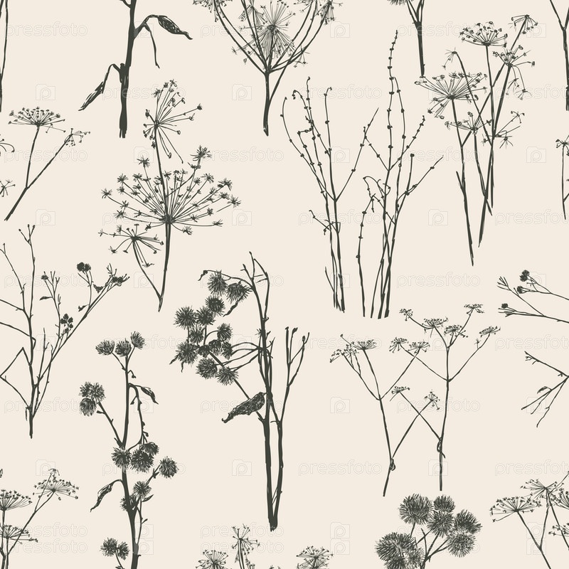 Бесшовный рисунок эскизов различных диких растений