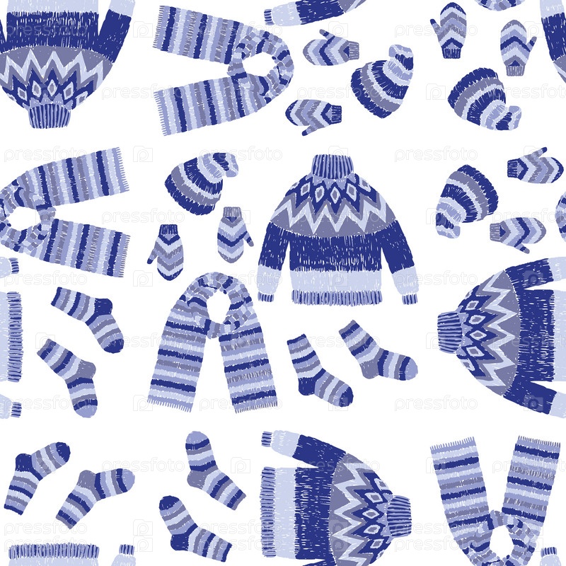 Бесшовный узор из различного нарисованного трикотажа для холодного сезона