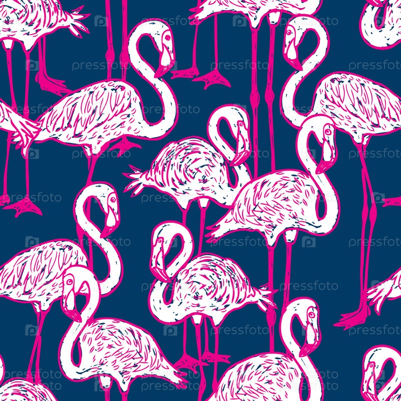 Бесшовный фон из розовых мультяшных фламинго
