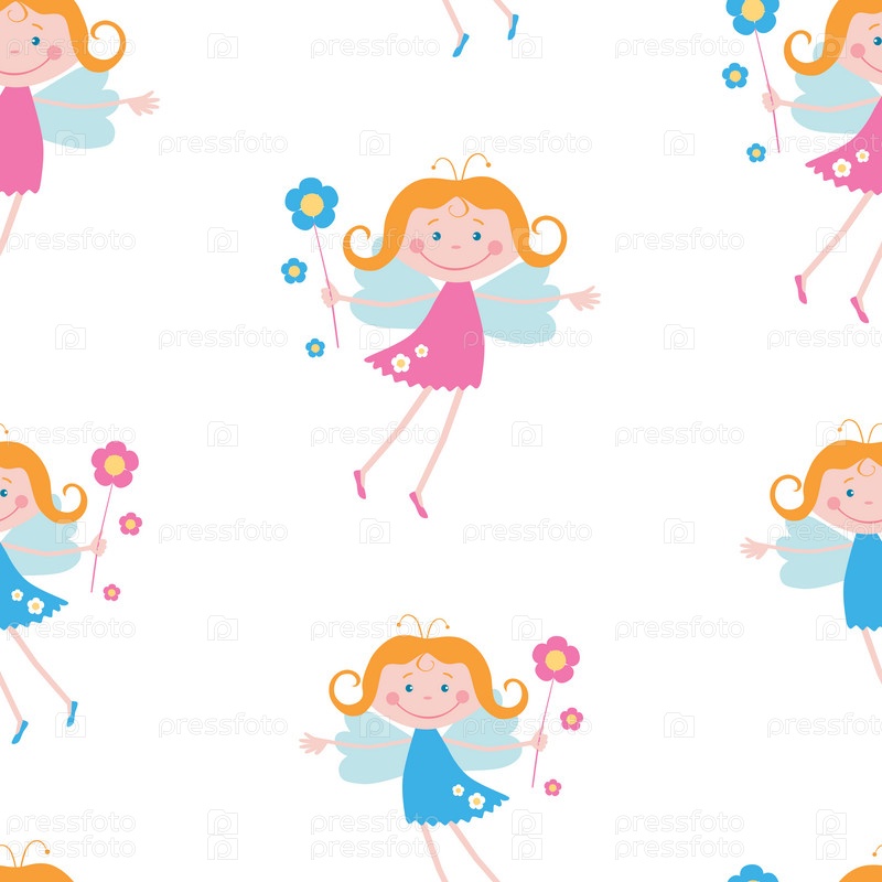Бесшовный фон летающих радостных девушек-эльфов