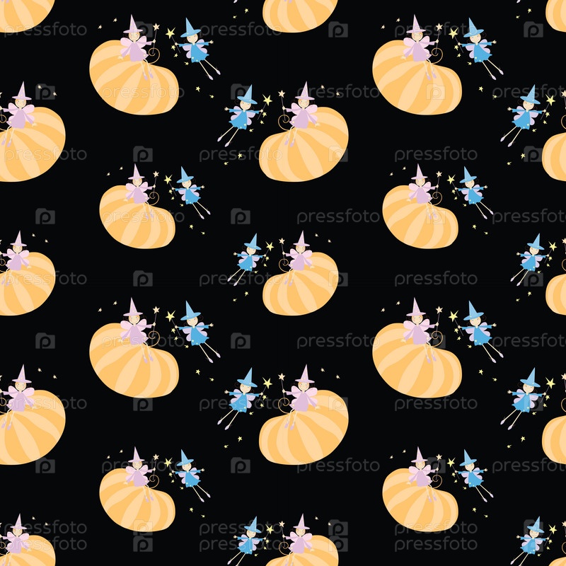 Бесшовный фон из тыкв на Хэллоуин и веселых девушек-эльфов