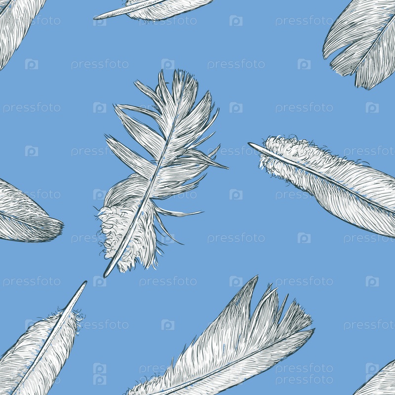Бесшовный фон эскизов перьев птиц