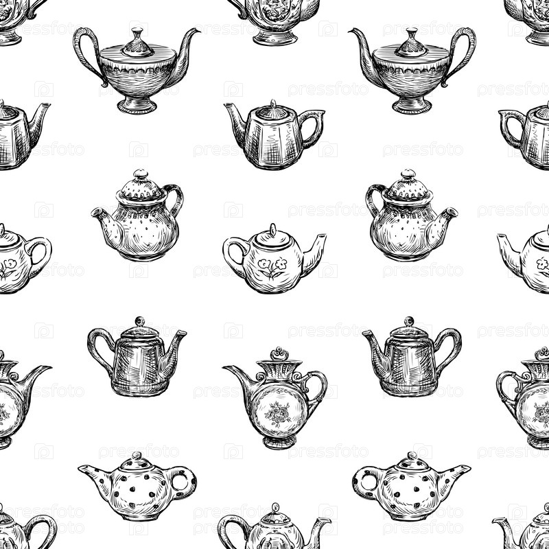 Бесшовный фон эскизов различных чайников