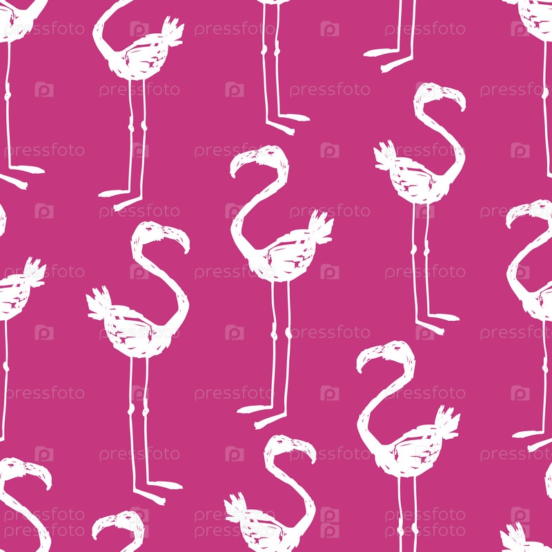 Бесшовный рисунок силуэтов нарисованных фламинго