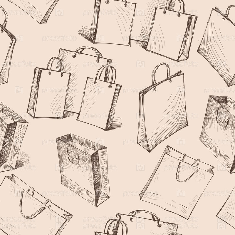 Бесшовный рисунок эскизов сумок для покупок