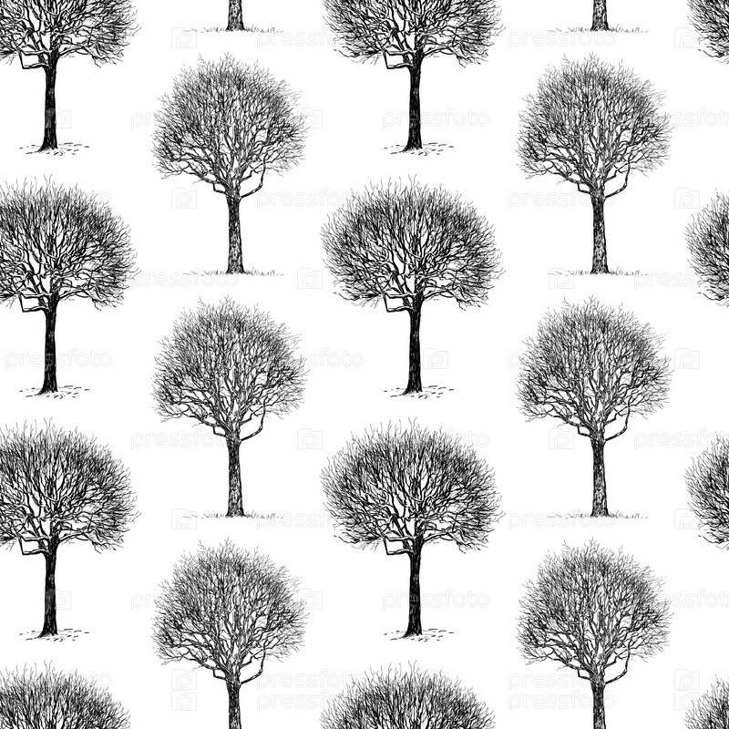 Бесшовный рисунок эскизов лиственных деревьев зимой