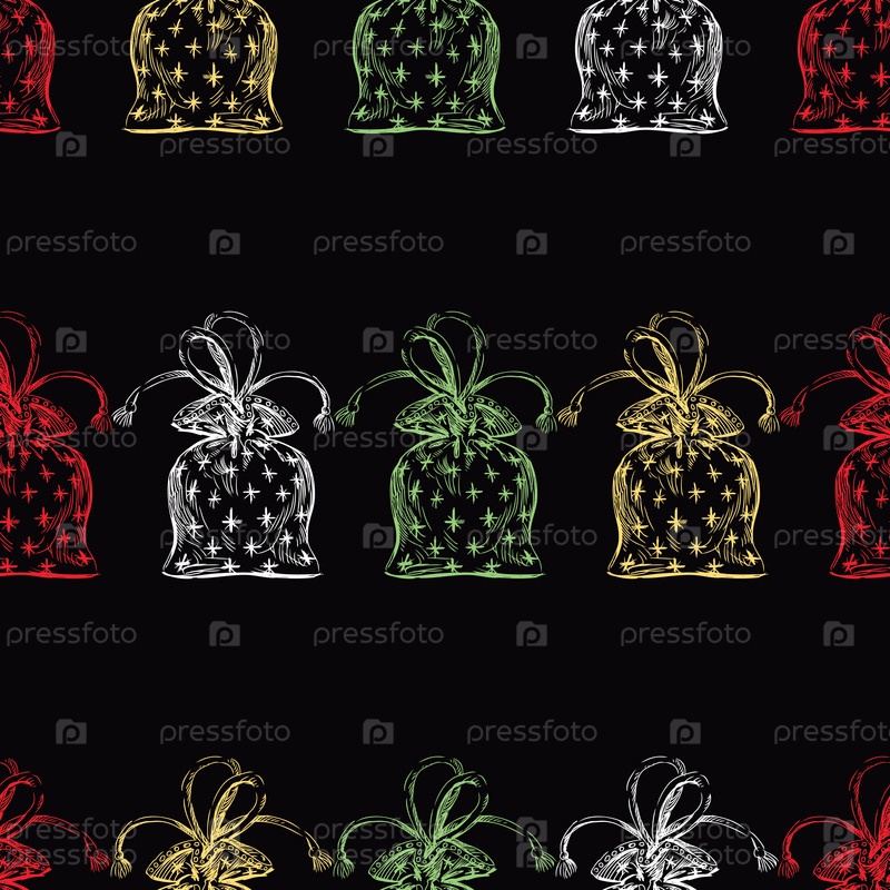 Бесшовный рисунок эскизов мешков с подарками
