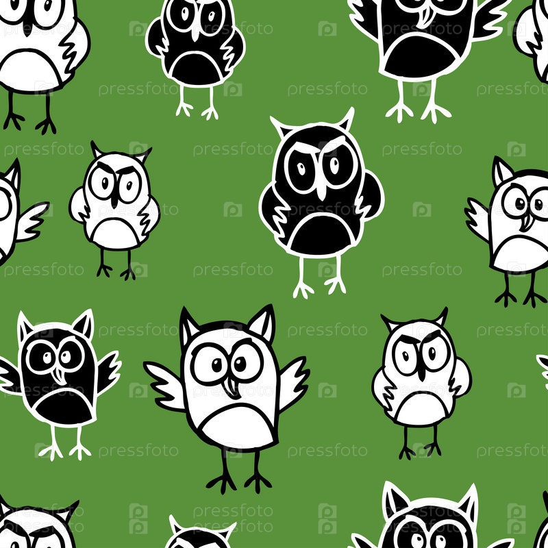 Бесшовный фон из нарисованных сов
