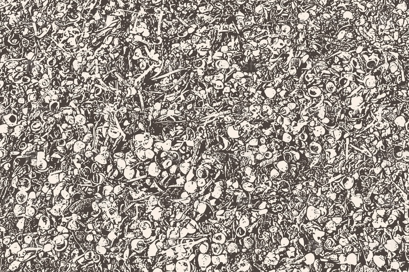 Векторная абстрактная текстура ракушек, водорослей и гальки