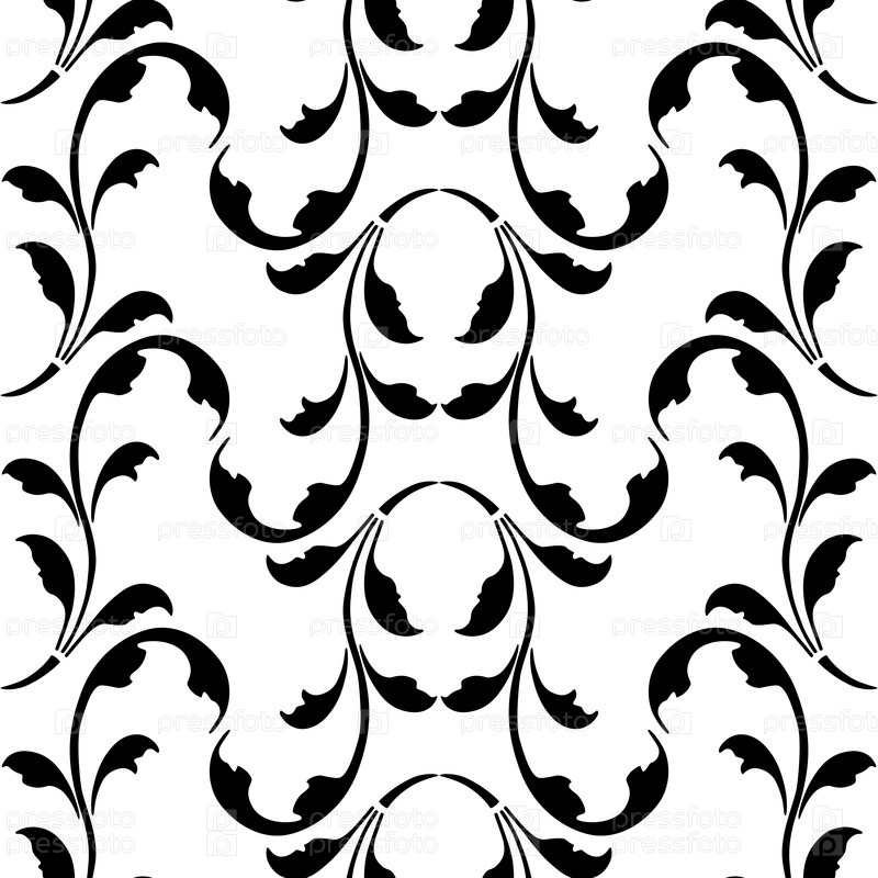 Бесшовный узор силуэтов декоративных гибких веток с листьями