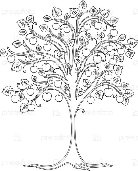 Контурный рисунок декоративной яблони