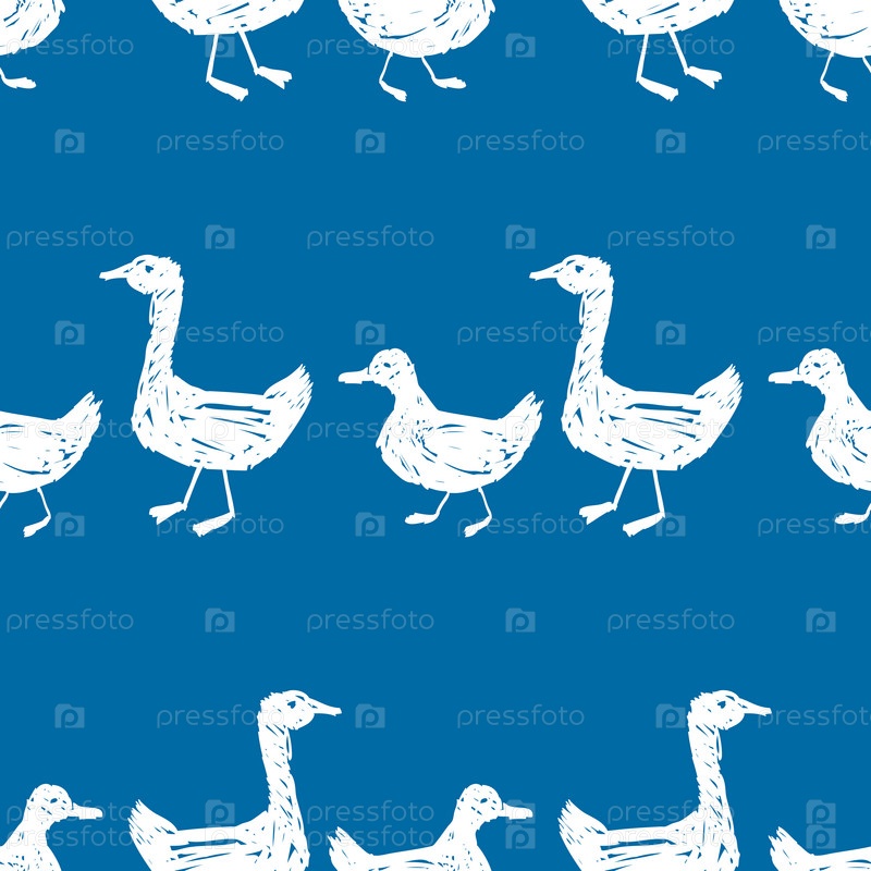 Бесшовный фон силуэтов нарисованных уток и гусей