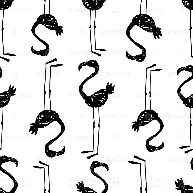 Бесшовный фон силуэтов нарисованных фламинго