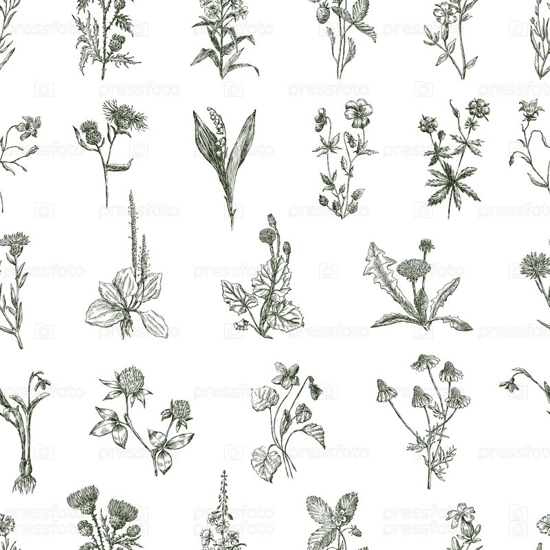 Бесшовный рисунок эскизов различных полевых цветов
