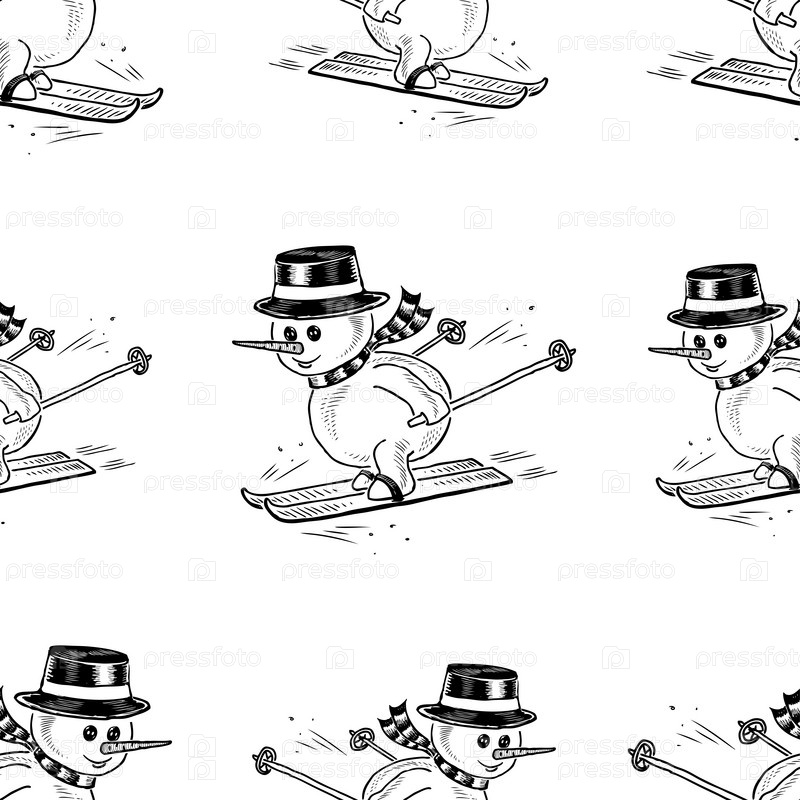 Бесшовный рисунок снеговиков на лыжах