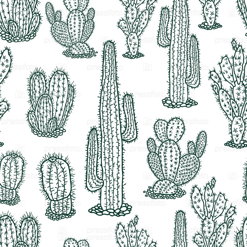 Бесшовный фон из нарисованных кактусов