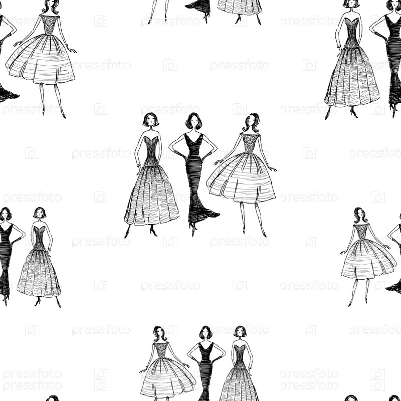 Бесшовный фон эскизов элегантных женщин в вечерних платьях