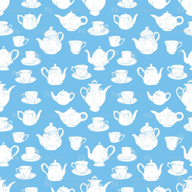 Бесшовный фон эскизов чайных чашек и чайников