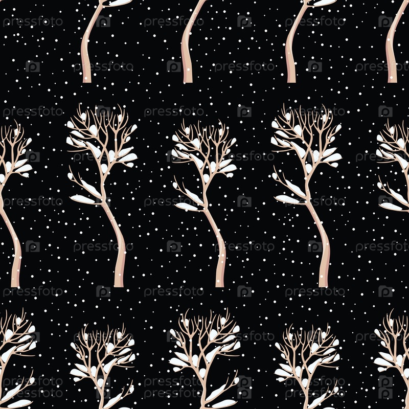 Бесшовный фон деревьев в снежном декабре