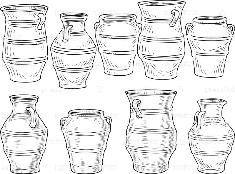 Набор различных греческих глиняных горшков