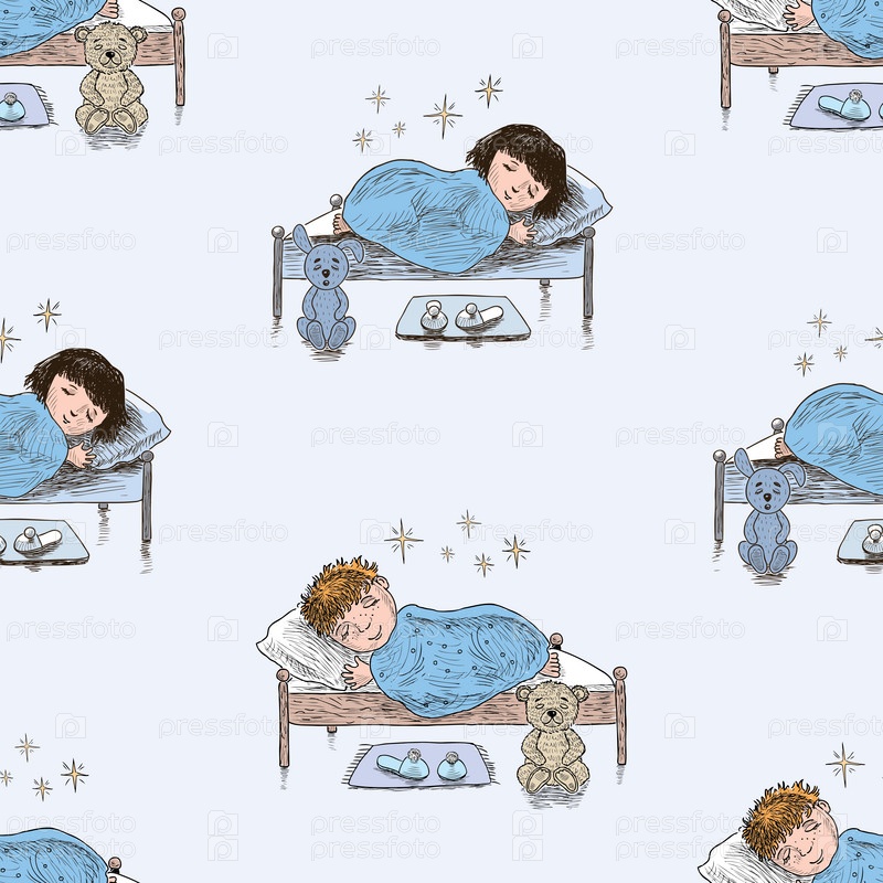 Бесшовный фон эскизов маленьких детей, спящих в своих кроватях