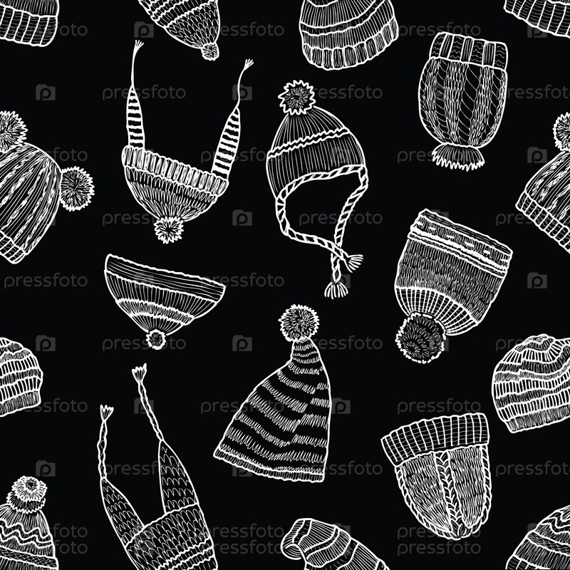 Бесшовный фон из различных вязаных шапок для холодной погоды