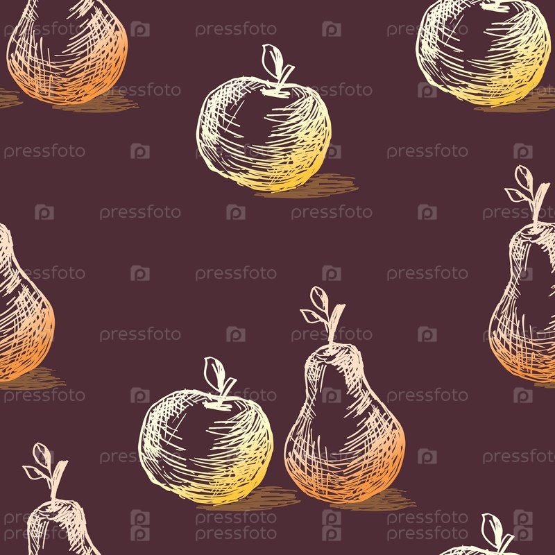 Бесшовный фон эскизов спелых яблок и груш