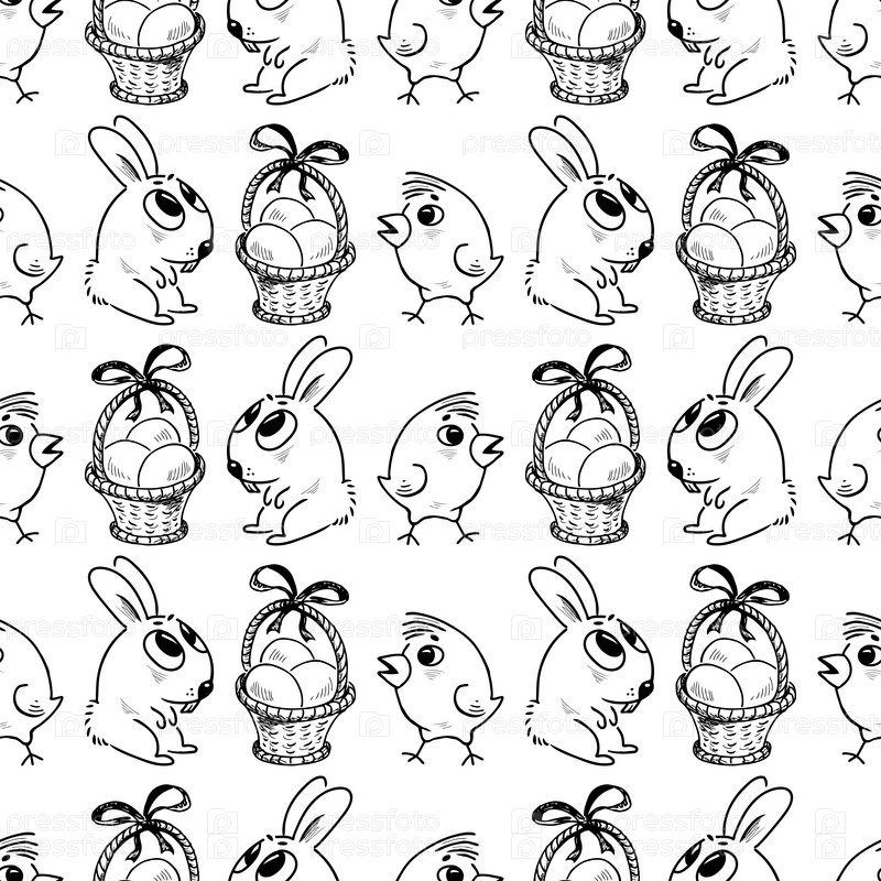 Бесшовный фон пасхальных кроликов, яиц и цыплят