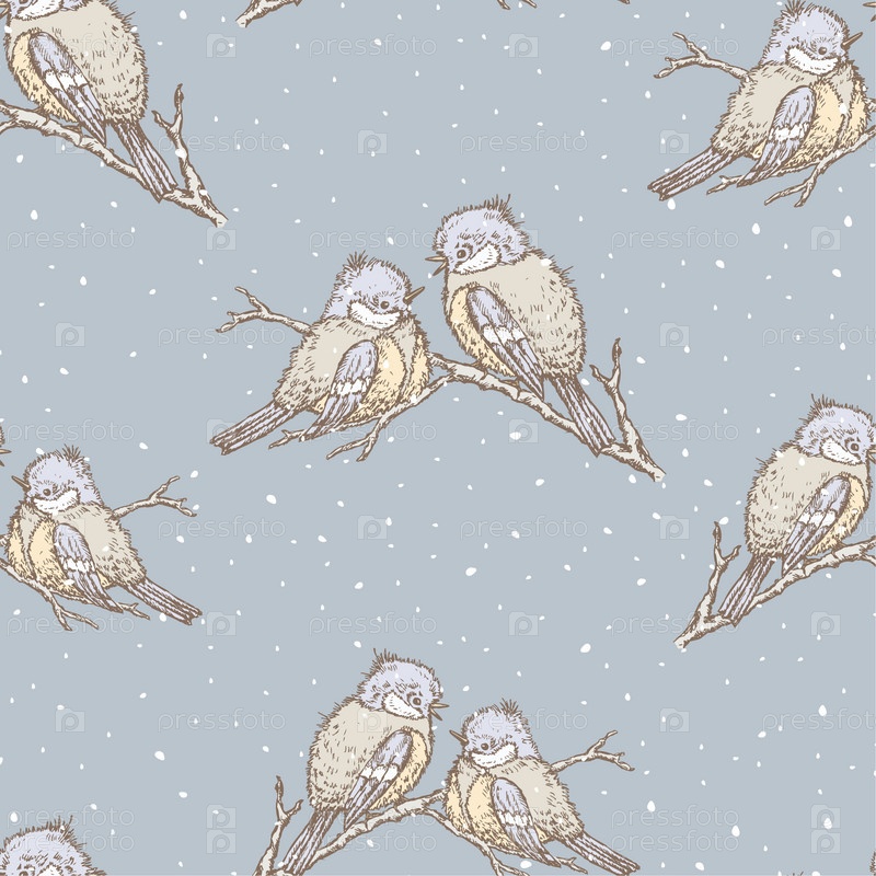 Бесшовный фон синиц зимой