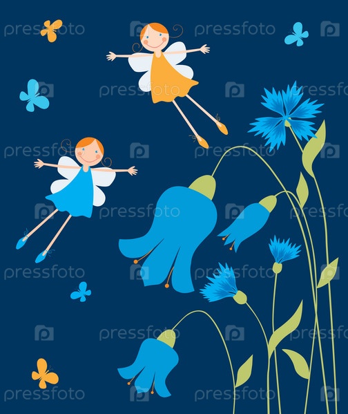 Веселые девушки-эльфы, летающие над цветами