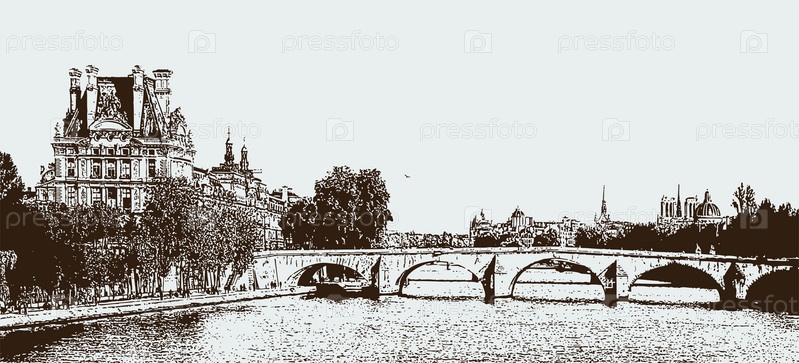 Векторная иллюстрация вида на реку Сену в Париже, Франция