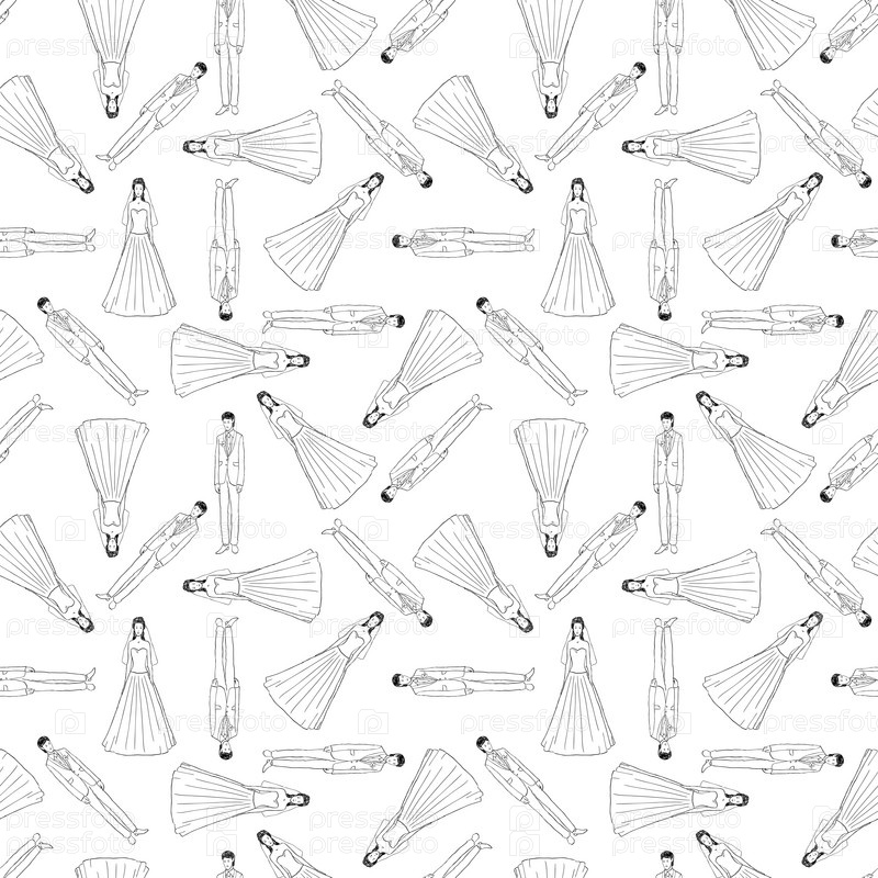 Бесшовный векторный фон очертаний счастливых молодых молодоженов