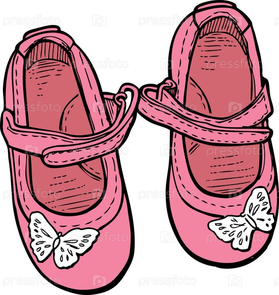 Векторный рисунок розовых туфель для маленькой девочки, вид сверху