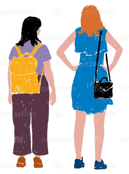 Векторный рисунок молодых городских женщин на открытом воздухе в летний день