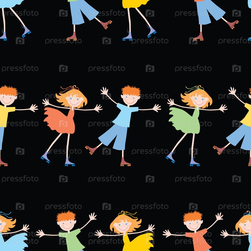 Бесшовный фон веселых детей, катающихся на роликовых коньках