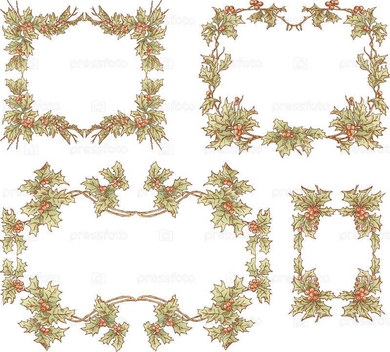 Набор декоративных цветочных рамок из ветвей падуба для рождественского украшения