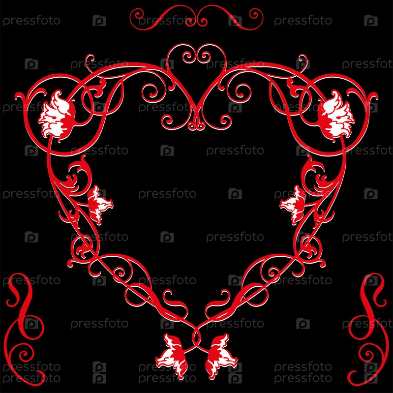 Векторное изображение декоративного цветочного сердца в винтажном стиле