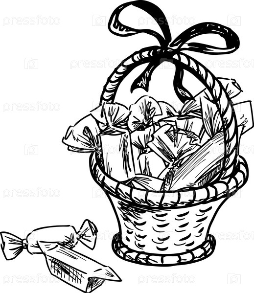 Векторный эскиз корзины с конфетами