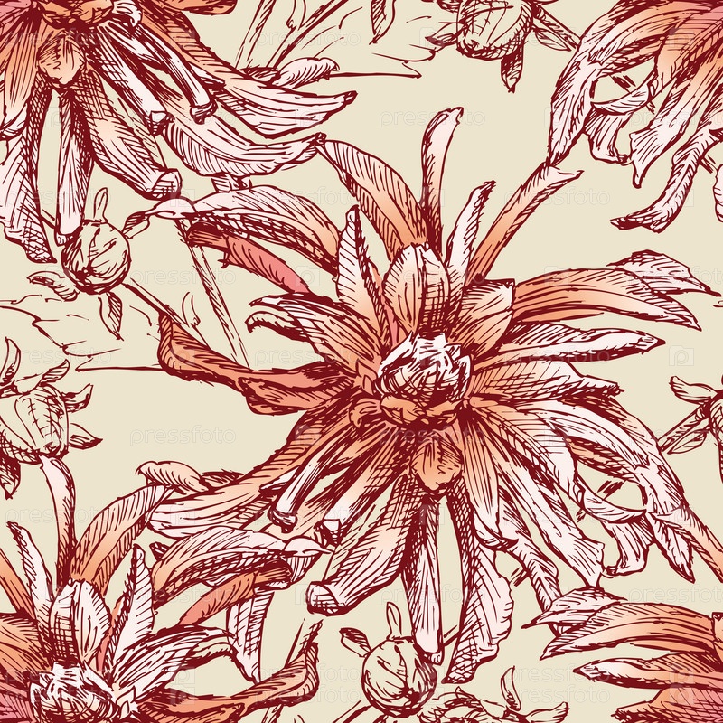 Бесшовный векторный фон эскизов садовых астр с бутонами