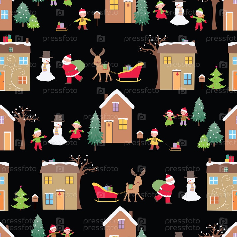 Бесшовный узор с Санта-Клаусом и счастливыми детьми в Рождество