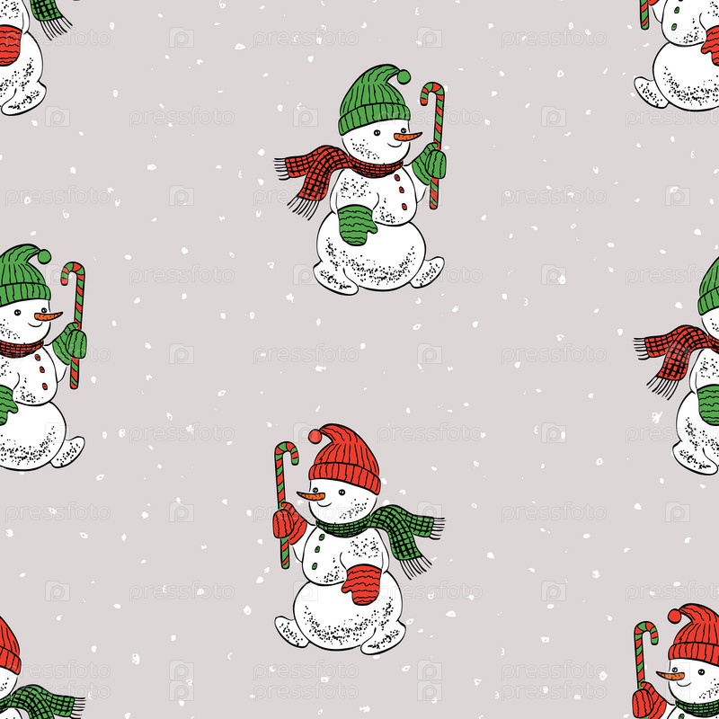Бесшовный узор с маленькими веселыми рождественскими снеговиками