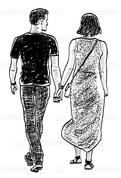 Эскиз пары молодых граждан, идущих на прогулку