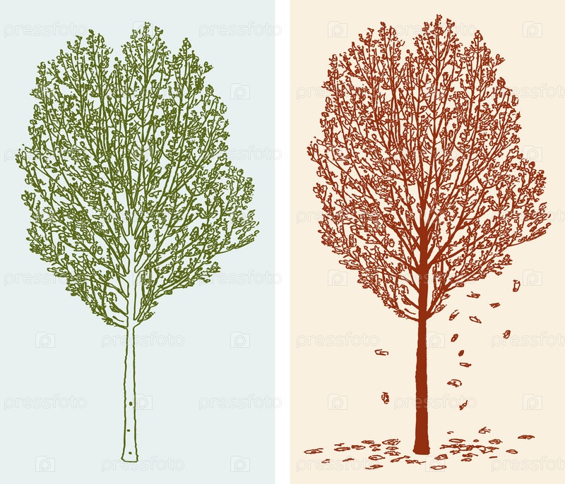 Векторное изображение лиственных деревьев весной и осенью