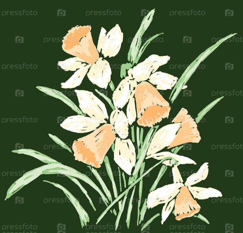 Векторное изображение эскизов букета весенних нарциссов