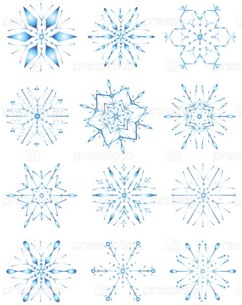 Векторное изображение набора различных рождественских снежинок