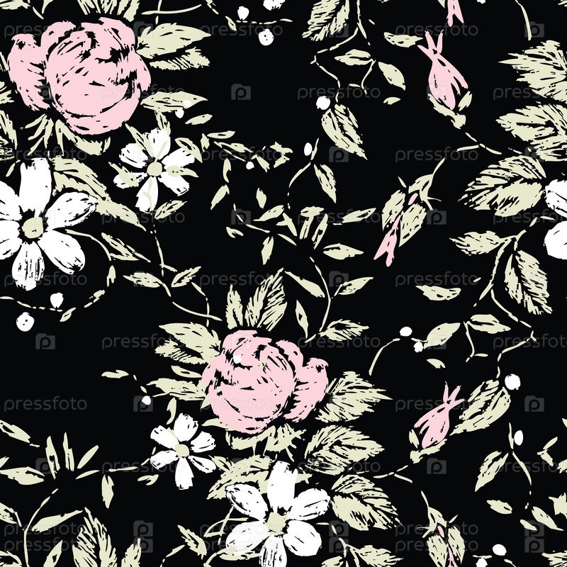 Бесшовный цветочный узор из эскизов роз и ромашек